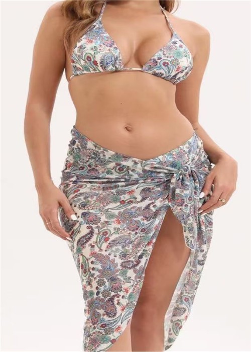 Swimsuit with Cover up Wrap Skirt Sarong Two Piece three piece Bathing Suit for women